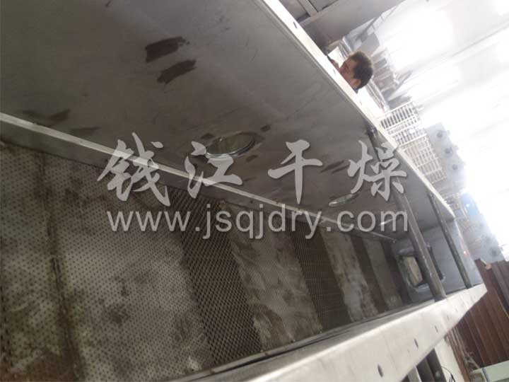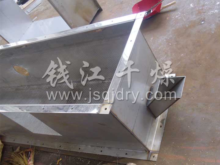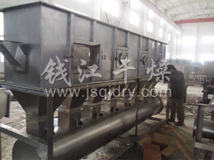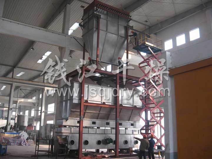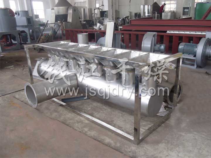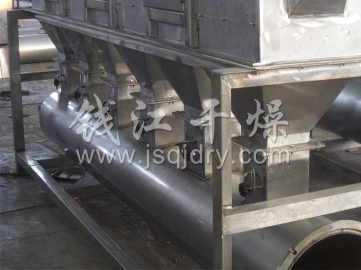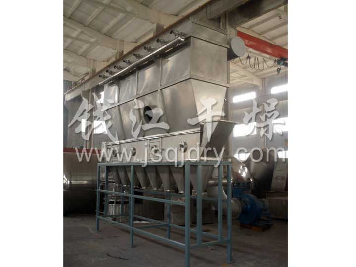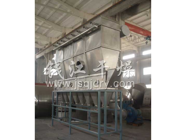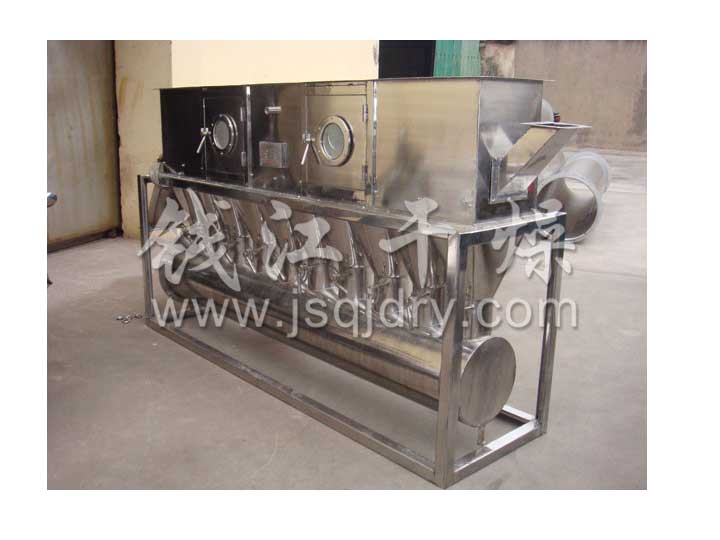 潔凈的熱風經閥板分配進入床體內,從加料器進入的濕物料被熱風形成沸騰狀態。由于熱風與物料廣泛接觸,增強了傳熱傳質的過程,因此在較短時間內就可干燥。如用連續型,物料從床體的一頭進入,經過幾十秒至幾分鐘沸騰干燥,自動從床體另一頭流出。本設備一般進行負壓操作。