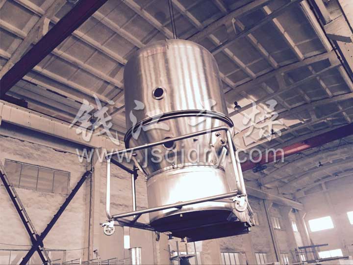 GFG系列高效沸騰干燥機是空氣經加熱凈化后,由引風機從下部導入,穿過料斗的孔網板。在工作室內,經攪拌和負壓作用形成流態化,水份快速蒸發后隨著排氣帶走,物料快速干燥。